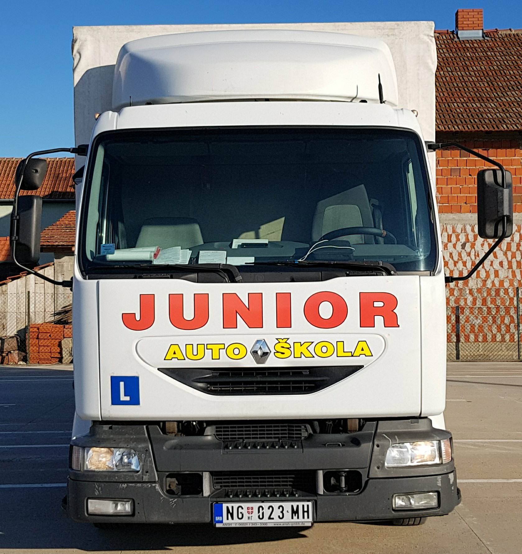 Auto škola Junior Vam nudi mogućnost polaganja kategorija (AM, A1, A2, A, B, C, CE, D), uz mogućnost odloženog plaćanja na rate i čekovima građana. Na raspolaganju Vam je vozni park od 18 vozila. Naša auto škola je prva u gradu započela pripreme za novi zakon o bezbednosti saobraćaja kupovinom novih vozila i izgradnjom poligona od 2000 m² po kriterijumima novog zakona jer je naš moto korak ispred drugih.